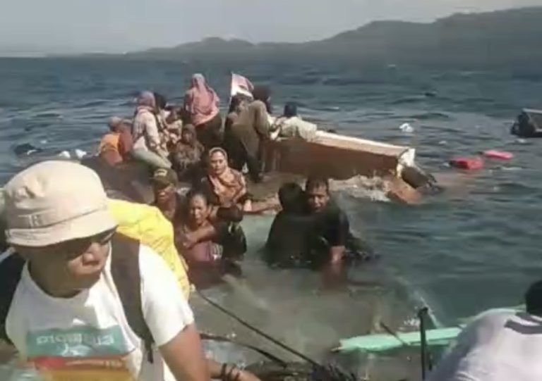 Dalam kondisi darurat, para penumpang berupaya menyelamatkan diri dengan alat seadanya, seperti jeriken kosong, papan kayu, serta peralatan kapal lain yang dijadikan pelampung darurat. Beberapa penumpang terlihat mengapung di laut sambil menunggu bantuan.