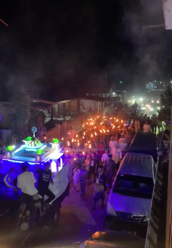 Gema takbir menggema di sepanjang jalan desa, diiringi ratusan obor yang dinyalakan peserta pawai. Suasana religius dan penuh kegembiraan tampak mewarnai perayaan tersebut, yang telah menjadi tradisi tahunan masyarakat setempat.